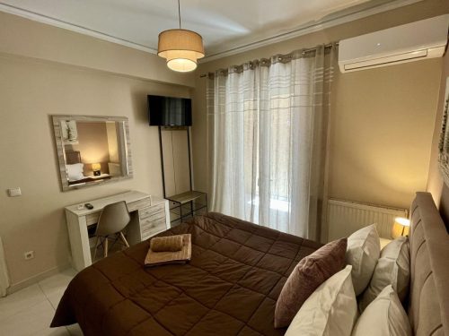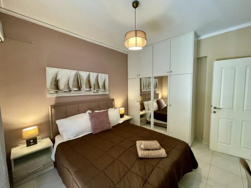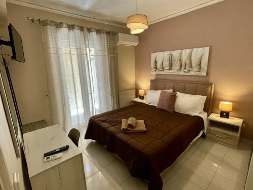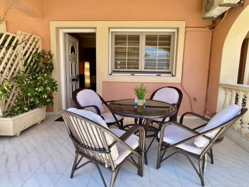 Sapfo apartment is located on the first floor, next to apartment Kiveli. It can accommodate four people and a fifth bed can be added. An ideal spot for relaxation is the private veranda on the entrance of the apartment which overlooks Argostoli, as well as the wonderful garden of Ira Apartments. Our complete services and facilities aim at the flawless accommodation of the visitors who will choose Ira Apartments for their holiday in Cefalonia.